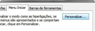 2º Na aba "Menu iniciar" clique sobre o botão "Personalizar"