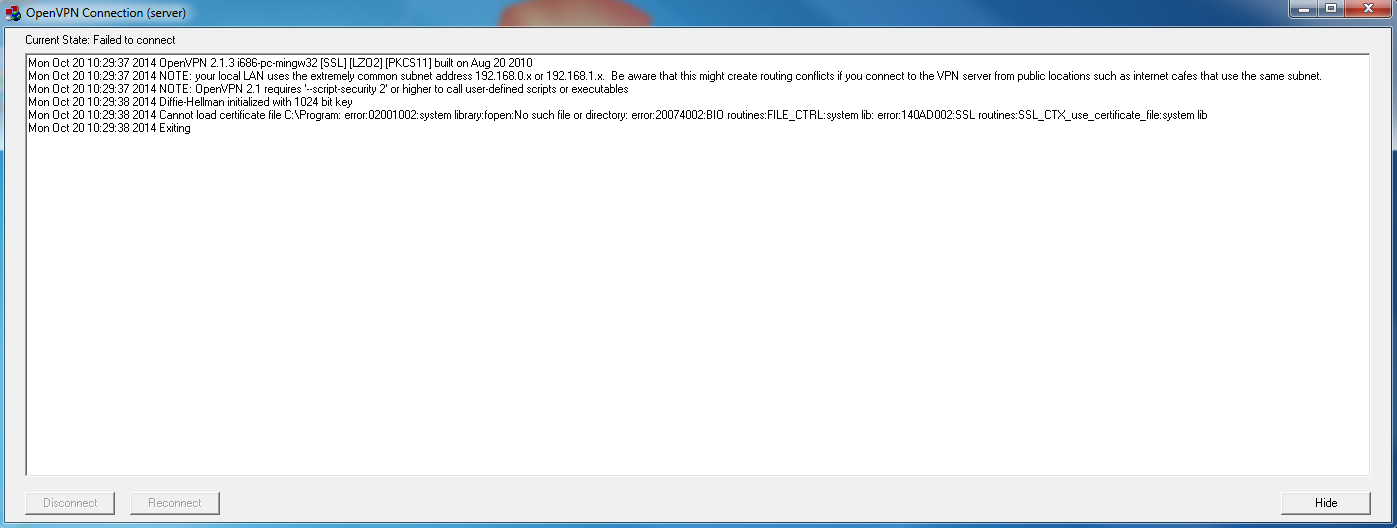 Re: Criação de VPN a partir de um software - Qua 22 Out 2014 - 11:24http://openvpn.net/index.php/open-source/faq/79-client/253-tls-error-tls-key-negotiation-failed-to-occur-within-60-seconds-check-your-network-connectivity.html
