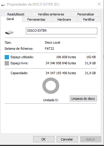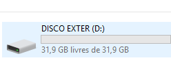 o mais estranho e que quando o ligo ao pc diz que o disco tem apenas 31,9GB disponiveis e diz que o disco esta vazio- mas na realidade o disco externo tinha 500GB de memoria.