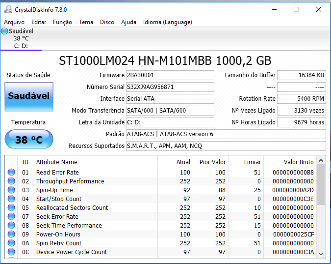 Por fim, utilize o CrystalDiskInfo e veja o estado do disco nas informações SMART (ou coloque aqui a captura de ecrã do programa para se ver melhor).