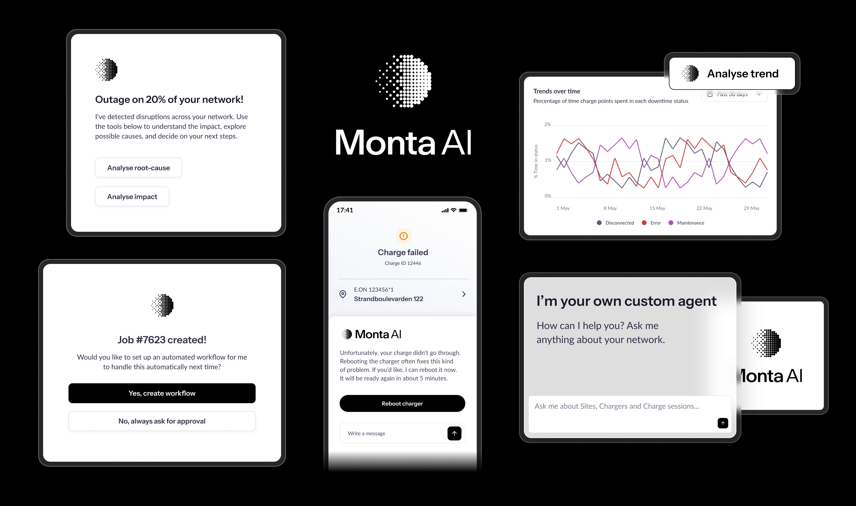 A grande promessa do Monta AI reside na sua capacidade de análise contínua. O sistema examina constantemente os fluxos de dados operacionais, desde as sessões de carregamento e atualizações de firmware até aos pagamentos e gestão de energia.