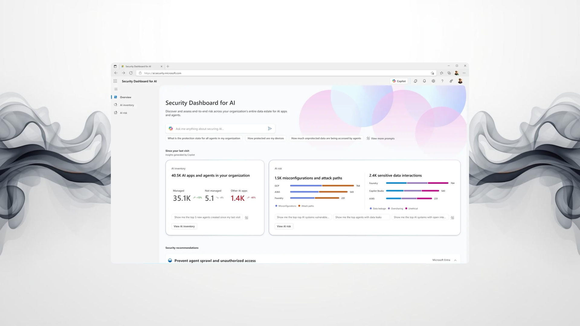 O novo Security Dashboard for AI encontra-se em fase de antevisão pública, em resposta aos pedidos dos profissionais da área que procuravam uma forma mais eficaz de gerir agentes, aplicações e plataformas de forma unificada. O painel combina sinais do Microsoft Defender, Entra e Purview em tempo real, permitindo aos líderes de segurança aplicar melhores políticas de governação.